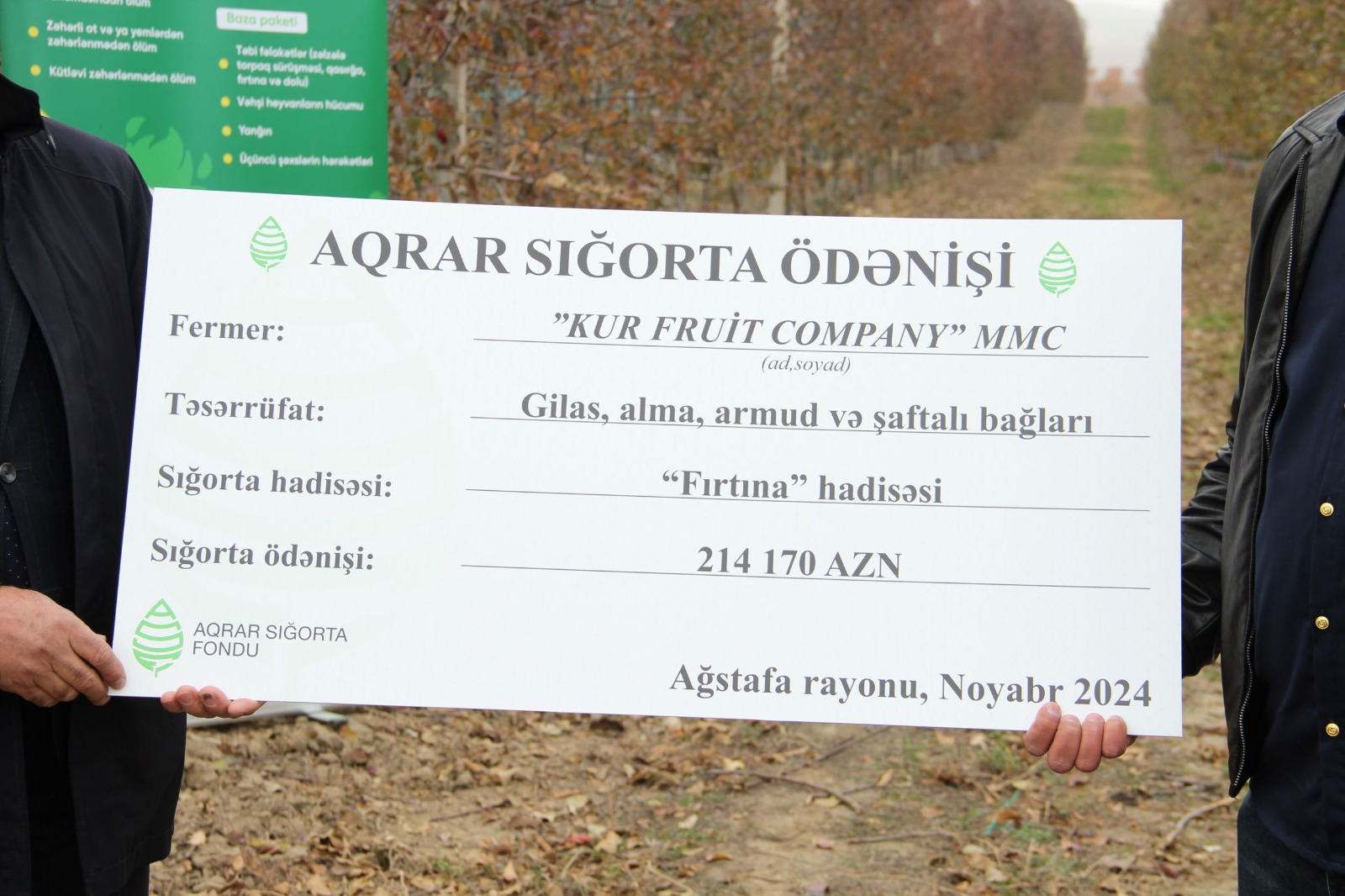 Meyvə bağlarını aqrar sığorta etmək olduqca sərfəlidir. Sığorta haqqı meyvənin növü, region və sığorta zərfindən asılı olaraq dəyişir. Bundan başqa, dövlətin 50%-lik sığorta haqqı dəstəyi sayəsində fermer sığorta haqqının yalnız yarısını ödəyir, digər yarısını fermerlərə dəstək üçün dövlət özü ödəyir.