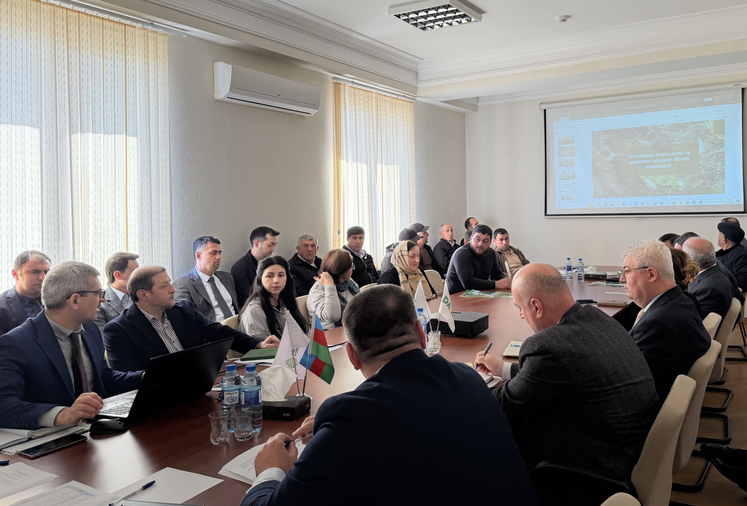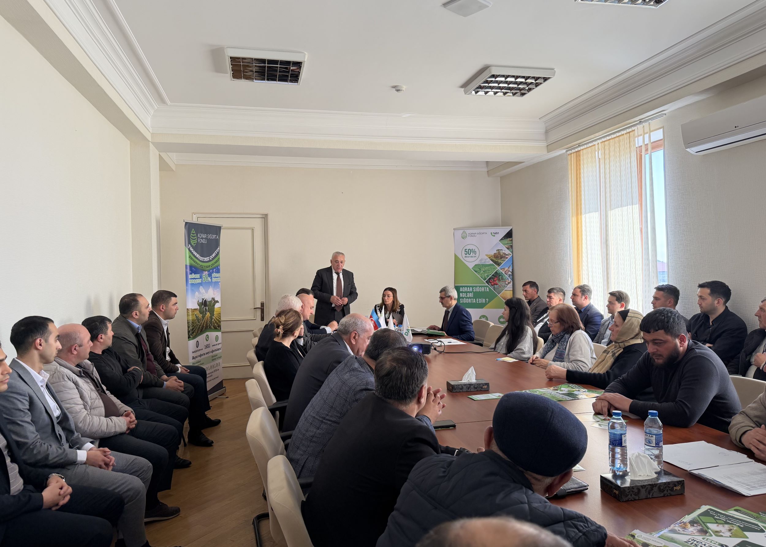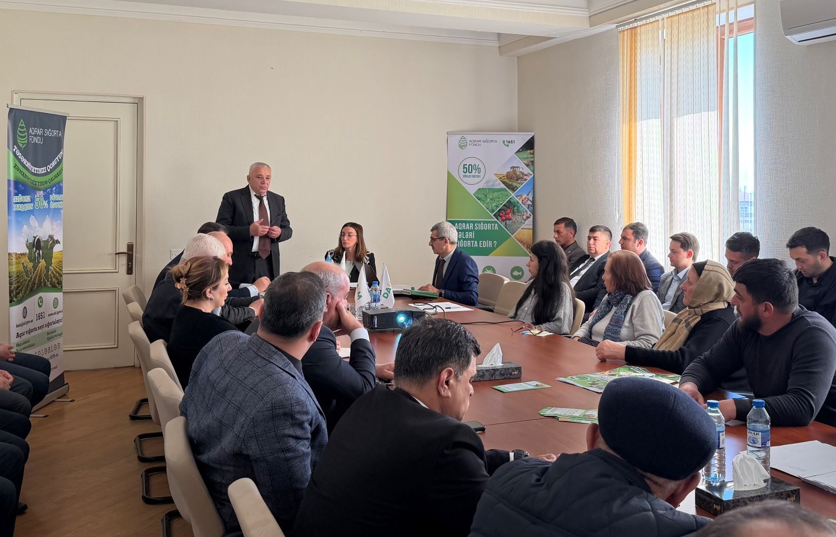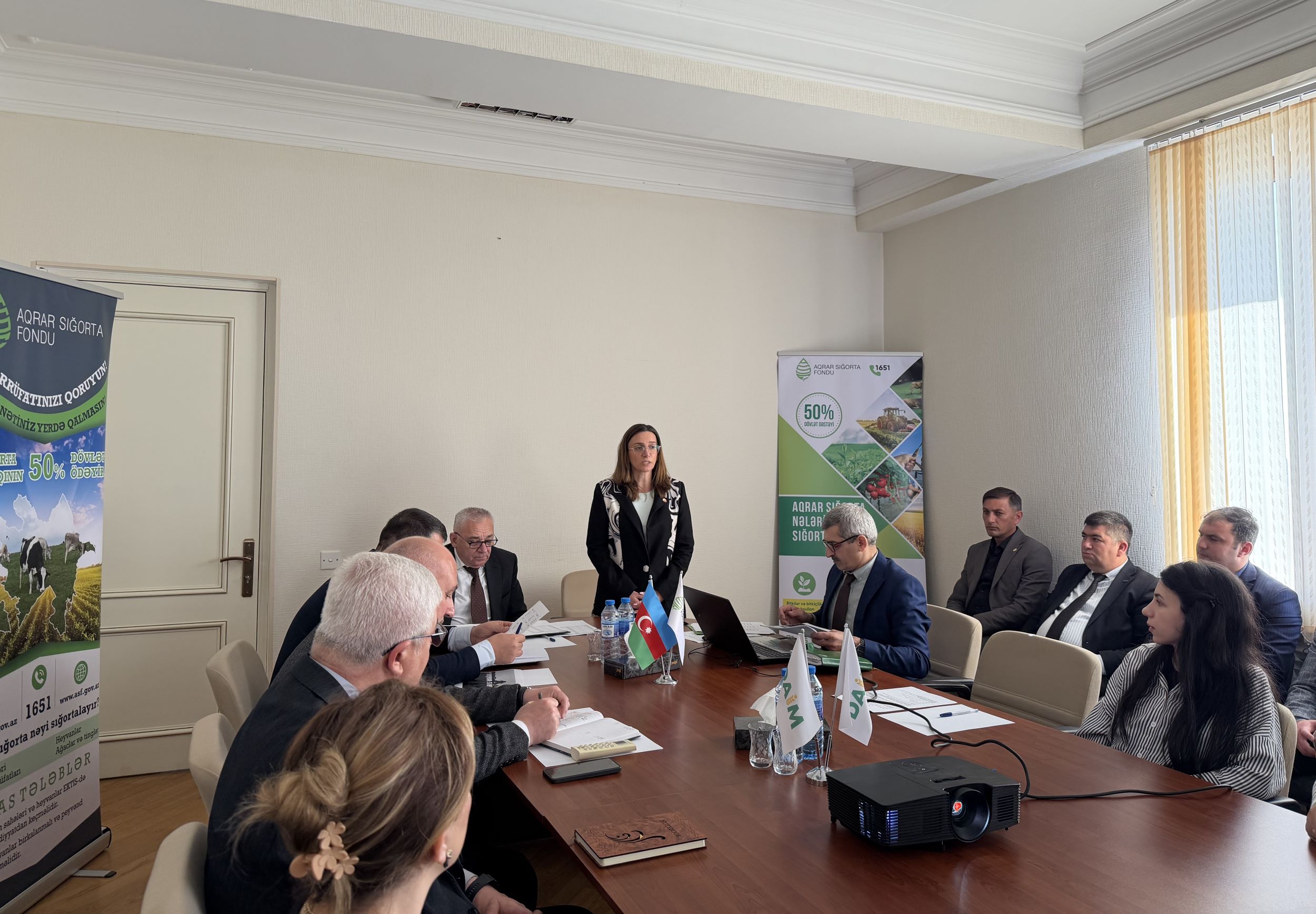 Tədbirdə iştirak edən Aqrar Sığorta Fondu İdarə Heyətinin üzvü Roman Əmircanov aqrar sığorta mexanizmi və Fondun fəaliyyəti barədə məlumat verib. Onun sözlərinə görə, Prezident İlham Əliyevin fərmanı ilə yaradılmış Aqrar Sığorta Fondu bitkiçilik, heyvandarlıq və balıqçılıq təsərrüfatlarını sığortalayır. Fermerlərə dəstək məqsədilə sığorta haqqının yarısını dövlət ödəyir, nəticədə cüzi məbləğlə təsərrüfatları və əkin sahələrini sığortalamaq mümkündür. R. Əmircanov bildirib ki, son günlər yağan güclü yağışlar səbəbindən ölkənin bir sıra bölgələrindən Aqrar Sığorta Fonduna zərər müraciətləri daxil olmaqdadır. Müraciətlər Xaçmaz, Şabran, Quba, Qusar, Siyəzən, Şamaxı, Ağsu, Qobustan, Ağcabədi və sair rayonlardan daxil olur. Bildirilib ki, hər bir müraciət qeydə alınır, hadisənin araşdırılması və dəymiş zərərlərin hesablanması üçün ərazilərə aqrar sığorta ekspertləri göndərilir.