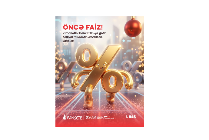 Bank “BTB” ASC 10 dekabr 2025-ci il tarixindən etibarən müştərilərinə sərfəli şərtlərlə “Öncə faiz!” adlı yeni əmanət kampaniyasını təqdim edir.