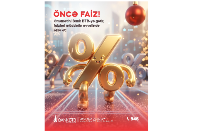 Bank “BTB” ASC 10 dekabr 2025-ci il tarixindən etibarən müştərilərinə sərfəli şərtlərlə “Öncə faiz!” adlı yeni əmanət kampaniyasını təqdim edir.
