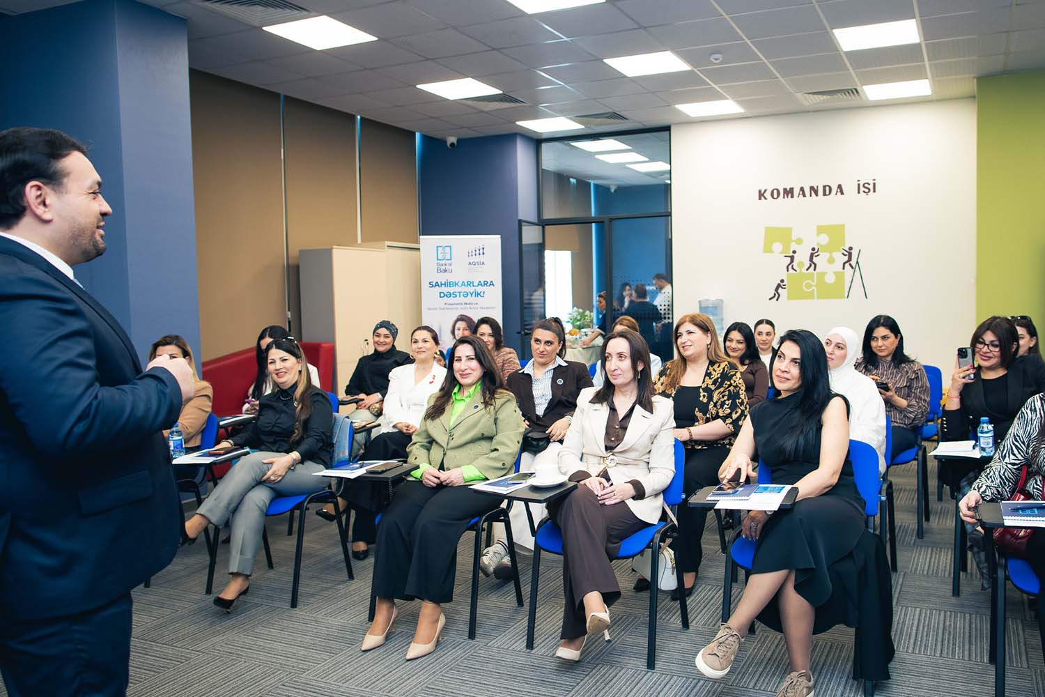 FED.az biznes və maliyyə xəbərləri portalı xəbər verir ki, “25 Aprel – Sahibkarlar Günü” ərəfəsində Bank of Baku-nun təşkilatçılığı və Azərbaycanda Qadın Sahibkarlığının İnkişafı Assosiasiyasının (AQSİA) dəstəyi ilə keçirilən təlimdə 20-dən çox sahibkar qadın iştirak edib. “Praqmatik Maliyyə: Qadın Sahibkarlar üçün Artım Modelləri” mövzusunda keçirilən təlimin əsas məqsədi qadın sahibkarlar arasında maliyyə savadlılığını artırmaq və bizneslərin dayanıqlı inkişafına töhfə verməkdir.