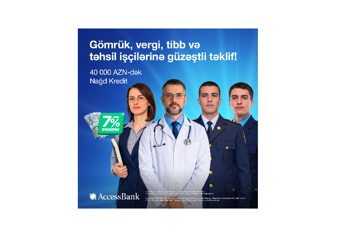 AccessBank gömrük, vergi, tibb və təhsil sahələrində çalışan şəxslər üçün nəzərdə tutulan nağd kredit kampaniyasını davam etdirir.