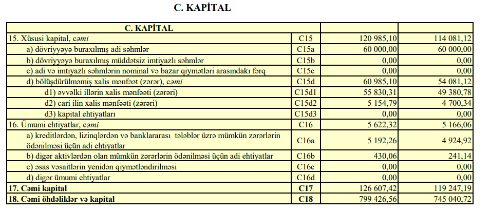 Cəmi kapital 126,6 milyon manat təşkil edib. Bu isə son bir ildə 7,4 milyon manat (6,2%) artımdır.
