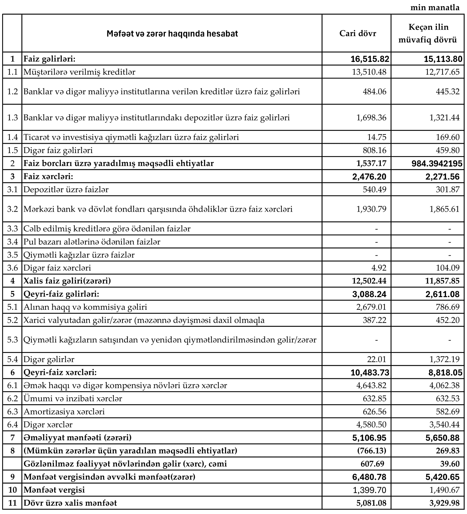 Bunun əksinə olaraq, xarici valyuta əməliyyatlarından xalis gəliri 65 min manat (14,4%) azalaraq 387 min manata enib.