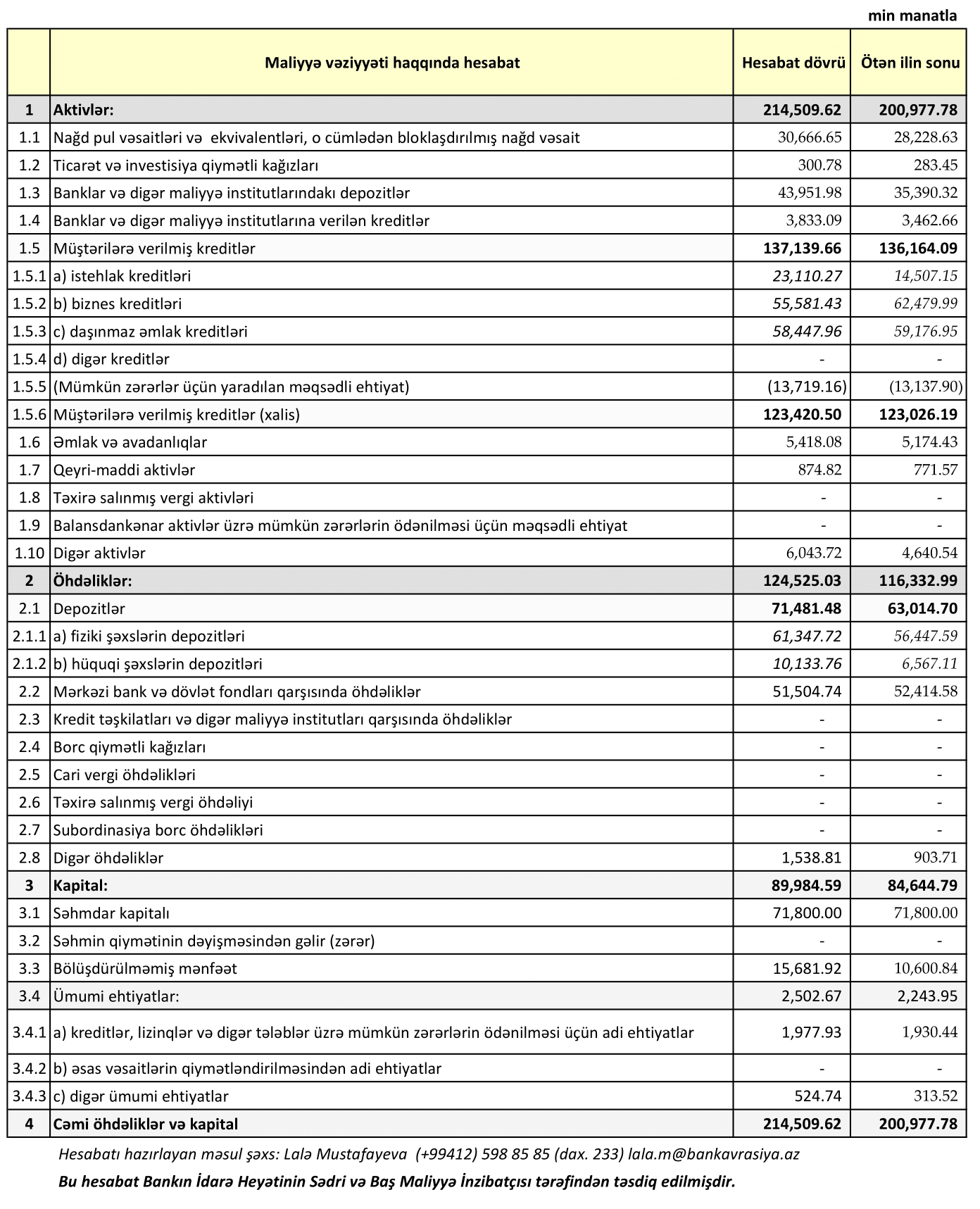 Bankın səhmdar kapitalı isə dəyişməyərək 71,8 milyon manat səviyyəsində qalıb.