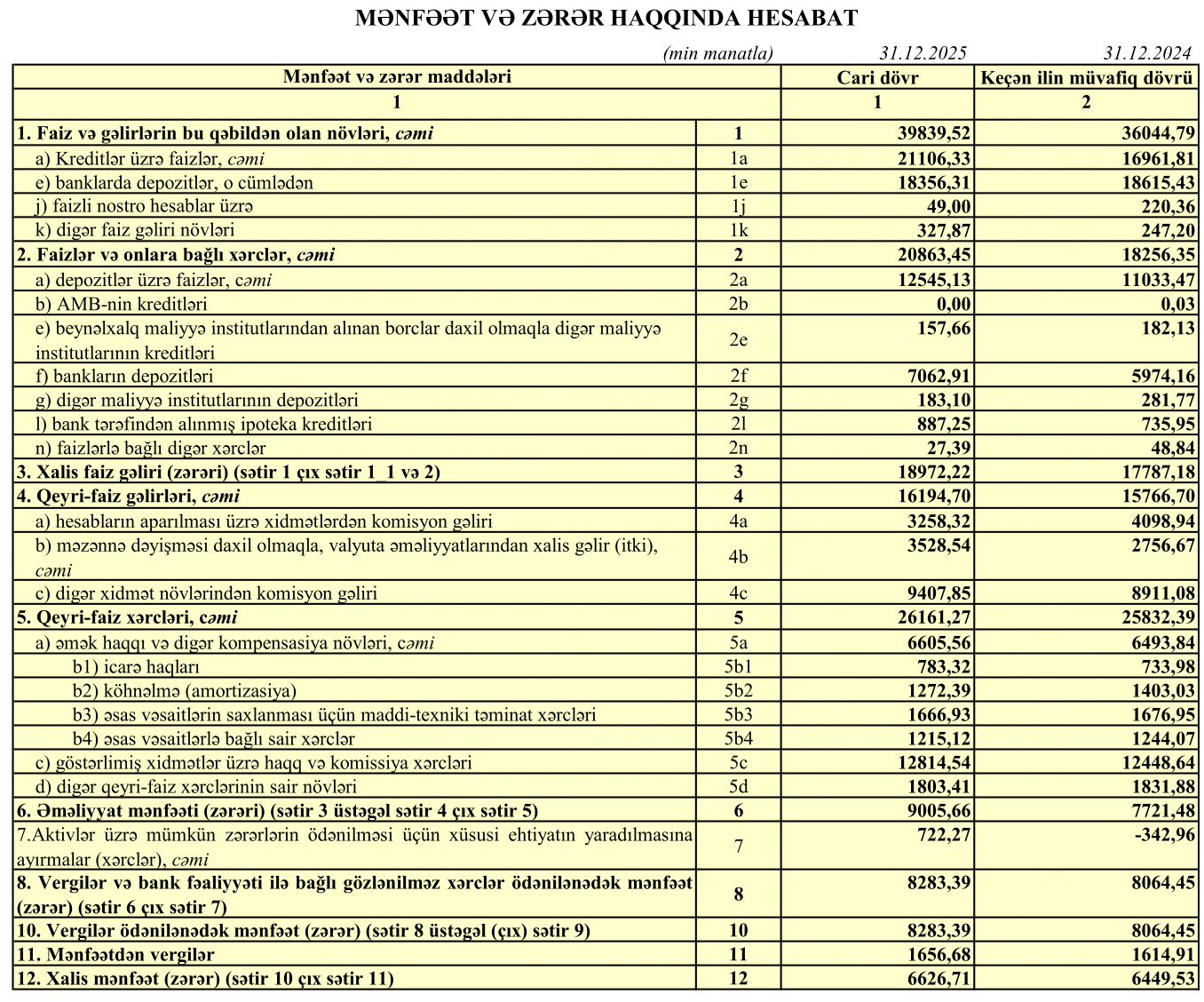 FED.az biznes və maliyyə xəbərləri portalı bu barədə bankın maliyyə hesabatına istinadən xəbər verir.