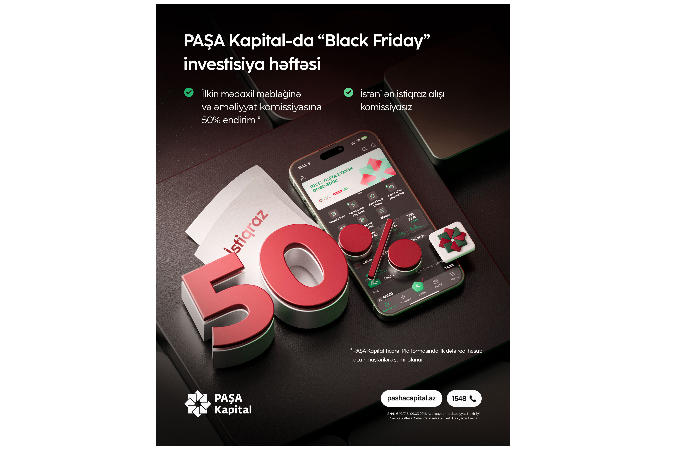 Ölkənin kapital bazarlarının inkişafında aparıcı rol oynayan və 15 ilə yaxındır ki, lider investisiya şirkəti kimi fəaliyyətini davam etdirən PAŞA Kapital “Black Friday” həftəsinə - investorlar üçün xüsusi kampaniyalara start verir.