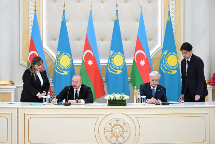 Sonra Azərbaycan-Qazaxıstan sənədləri mübadilə olundu.