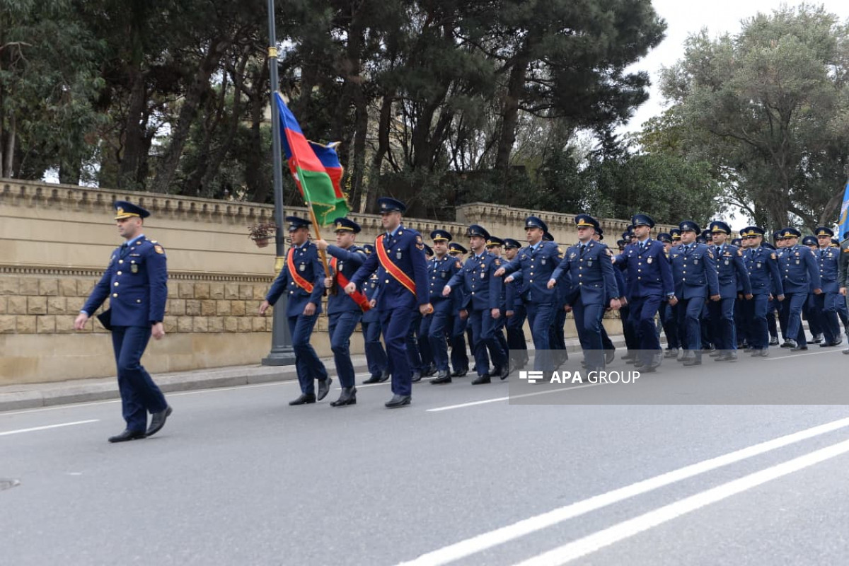 Zəfər Gününün beşinci ildönümünün qeyd olunması münasibətilə Bakıda hərbi orkestrlərin müşayiəti ilə yürüş keçirilir.