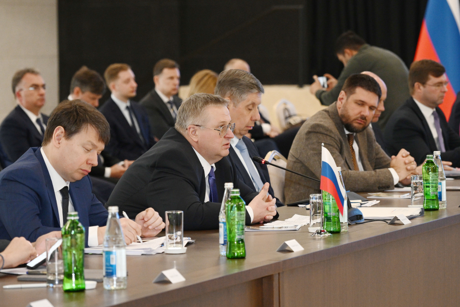 Rusiya tərəfdən çıxış edən Rusiya Federasiyası Höküməti sədrinin müavini Aleksey Overçuk Azərbaycan-Rusiya əməkdaşlığının strateji xarakter daşıdığını qeyd edib. O, nəqliyyat-logistika, sənaye və aqrar sahələrinin əsas prioritetlər olduğunu bildirib, “Şimal-Cənub” Beynəlxalq Nəqliyyat Dəhlizinin inkişafının regional və beynəlxalq ticarət əlaqələrinin genişlənməsində mühüm rol oynadığını vurğulayıb. Overçuk Zəngilanda aparılan bərpa işlərini yüksək qiymətləndirərək, bu ərazilərin birgə layihələr üçün yeni imkanlar yaratdığını qeyd edib.