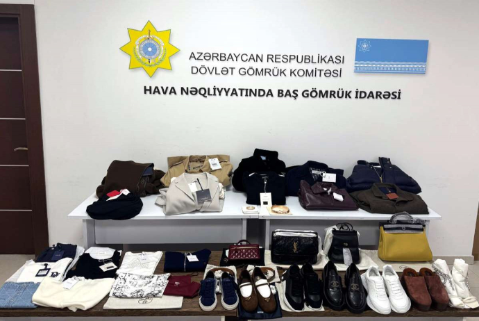Vətəndaşın yüklərinə baxış zamanı ona məxsus baqajdan və əl çantasından əvvəlcədən gömrük orqanına bəyan edilməyən ayaqqabı, çanta, üst geyimlərindən ibarət 32 ədəd kommersiya təyinatlı brend məhsullar (Celine, Chanel, Hermes, Dolce & Gabanna, Dior, Burberry, Louis Vuitton, Prada, Loro Piano) və “Bulqari” markalı zərgərlik məmulatları aşkar edilib.