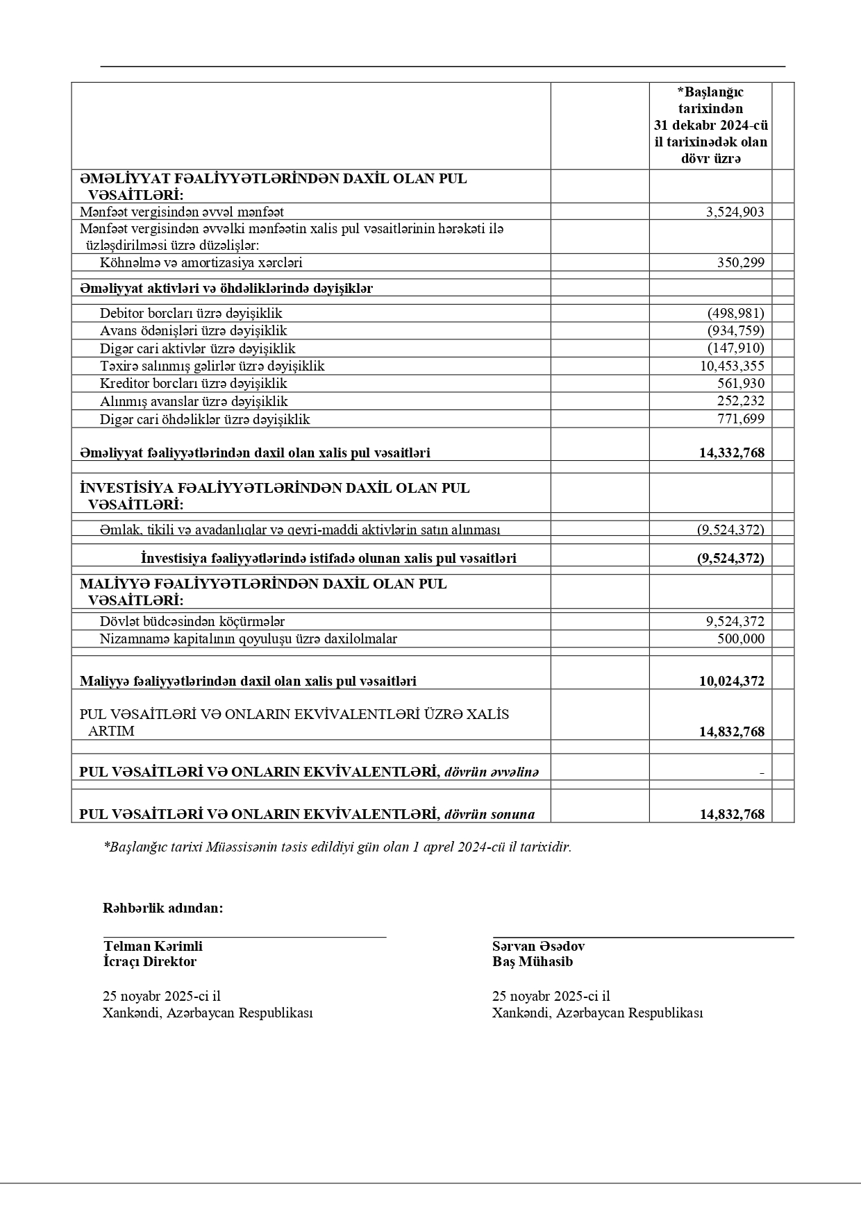 İlk ərzində toplanan 3 milyon 525 min manat mənfəətin 315 min manatı mənfəət vergisi kimi ödənilib. Nəticədə qurum 2024-cü ili 3 milyon 173 min manat xalis mənfəətlə tamamlayıb.