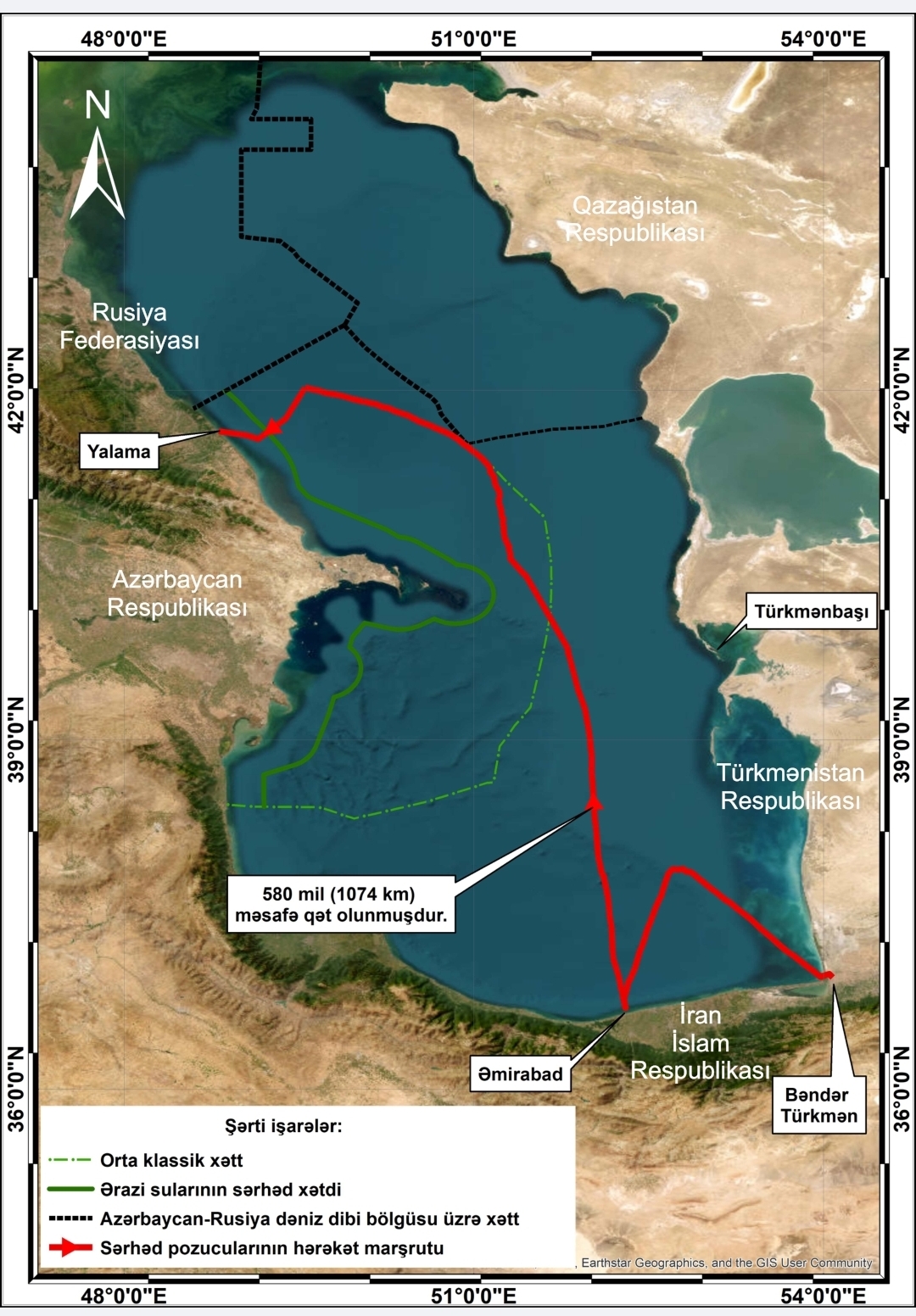 Sərhəd pozucularının üzərindən aşkar edilmiş "Garmin" markalı GPS qurğusunun yaddaşına baxış keçirilərkən onların İran İslam Respublikası ərazisindən 1074 km məsafə qət edib Türkmənistan Respublikasının ərazi sularından keçməklə Azərbaycan Respublikasının ərazisinə daxil olması müəyyən edilib.