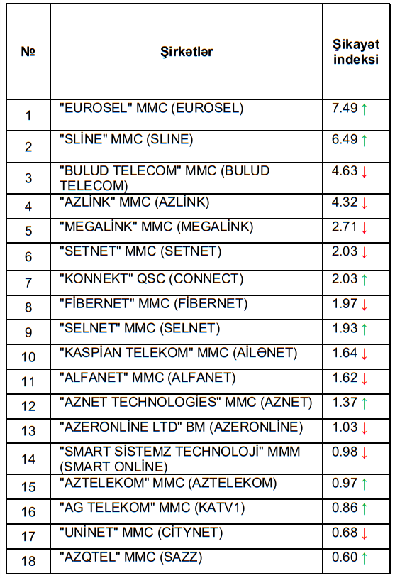 Bu şirkətlərdən ilk ikisinin şikayət indeksi yaxşılaşıb, digər üçünün isə pisləşib.