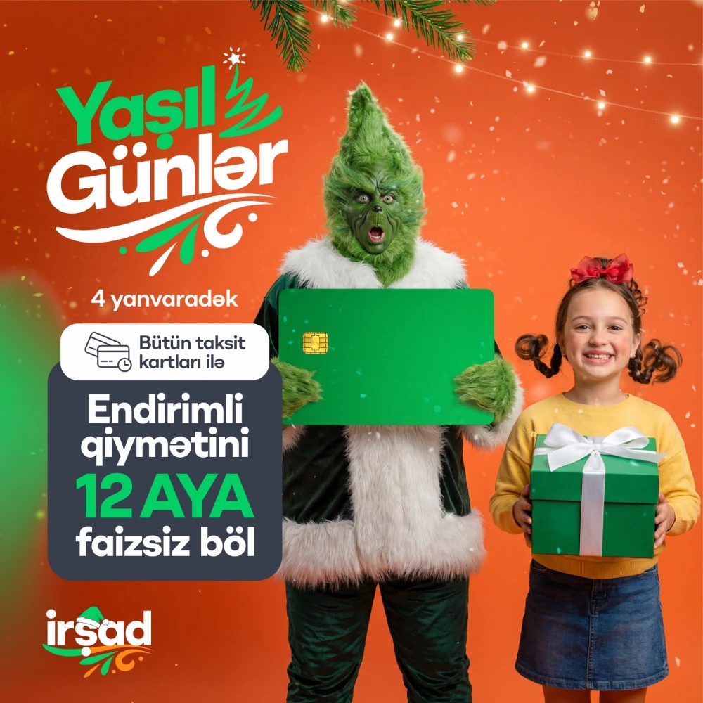 “Yaşıl Günlər” kampaniyası çərçivəsində İrşad mağazalar şəbəkəsində və onlayn satış platformalarında müştərilərə ev və şəxsi istifadə üçün elektronika, məişət texnikası, mebel, smartfonlar və aksessuarlar 70%-ə qədər endirimlə təqdim olunur.