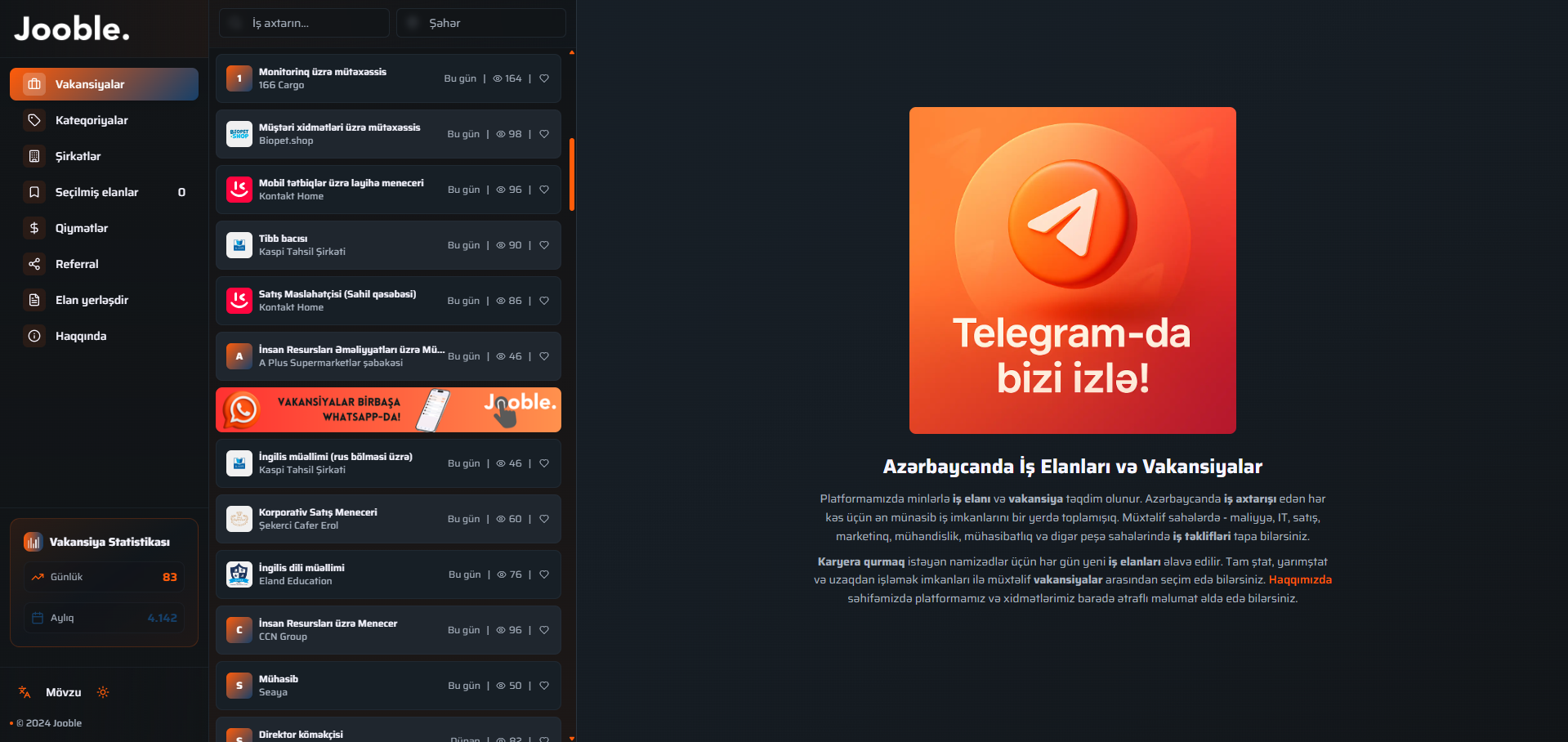 Jooble.az - iş elanları, vakansiyalar və HR-lar üçün əlavə qazanc imkanlarını birləşdirən süni intellekt əsaslı platforma.