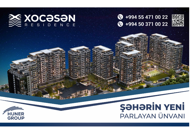Xocəsən Residence yaşayış kompleksində 30% ilkin ödəniş və daxili kredit şərtlərilə 1, 2, 3 və 4 otaqlı mənzillərə sahib olmaq mümkündür. Ətraflı məlumat üçün 050 371 00 22 və 055 471 00 22 nömrəsi ilə əlaqə saxlaya və ya Huner Group-un Ağ Şəhərdə yerləşən baş ofisini ziyarət edə bilərsiniz.