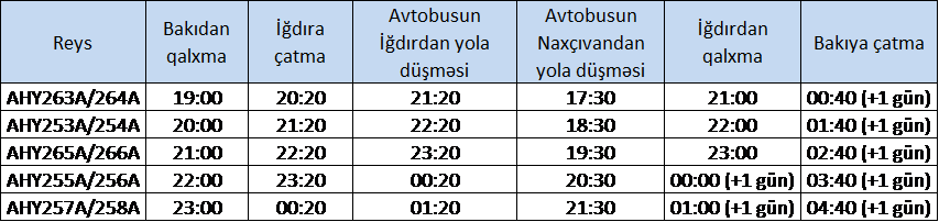 FED.az AZAL-a istinadən xəbər verir ki, Azərbaycan vətəndaşları üçün Bakıdan Naxçıvana nəqliyyat əlaqəsinin təmin edilməsi məqsədilə Bakıdan Türkiyənin İğdır şəhərinə və əks istiqamətdə aviareyslər təyin edilib. Sərnişinlərin İğdır aeroportundan Naxçıvana və əks istiqamətə daşınması üçün xüsusi avtobuslar təşkil olunub. Avtobus reysləri Naxçıvan avtovağzalı vasitəsilə həyata keçiriləcəkdir.