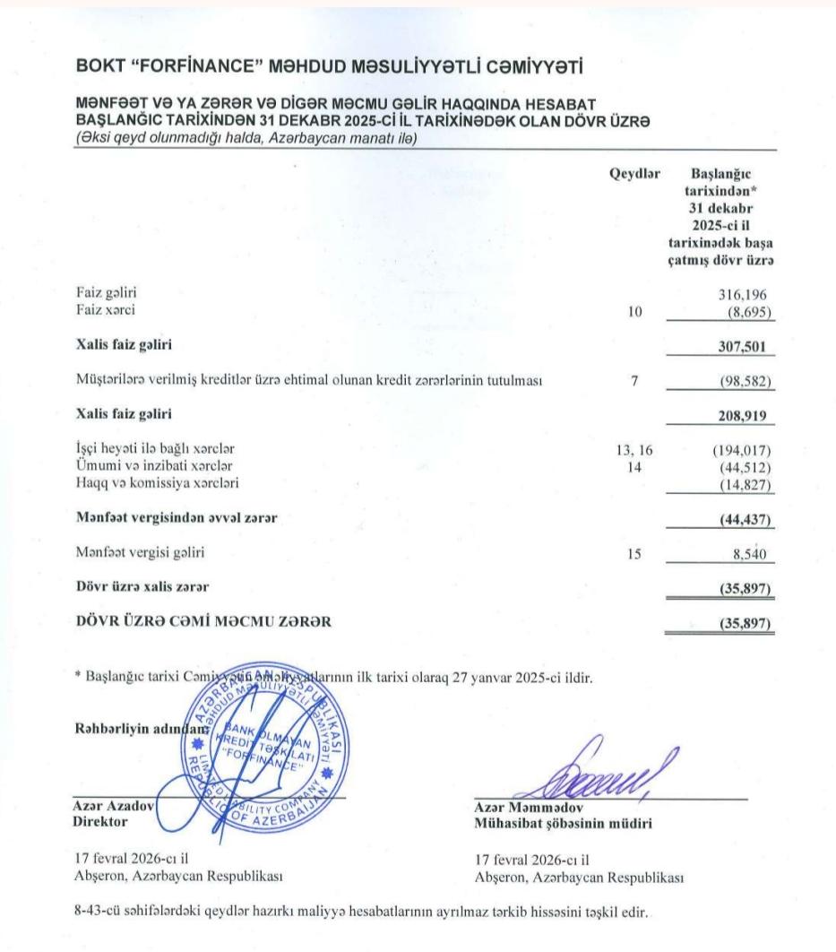 Xəbər verdiyimiz kimi, ötən ilin iyun ayına Azərbaycan Mərkəzi Bankı “Forfinance” MMC-yə bank olmayan kredit təşkilatı (BOKT) fəaliyyəti üçün lisenziya verib.