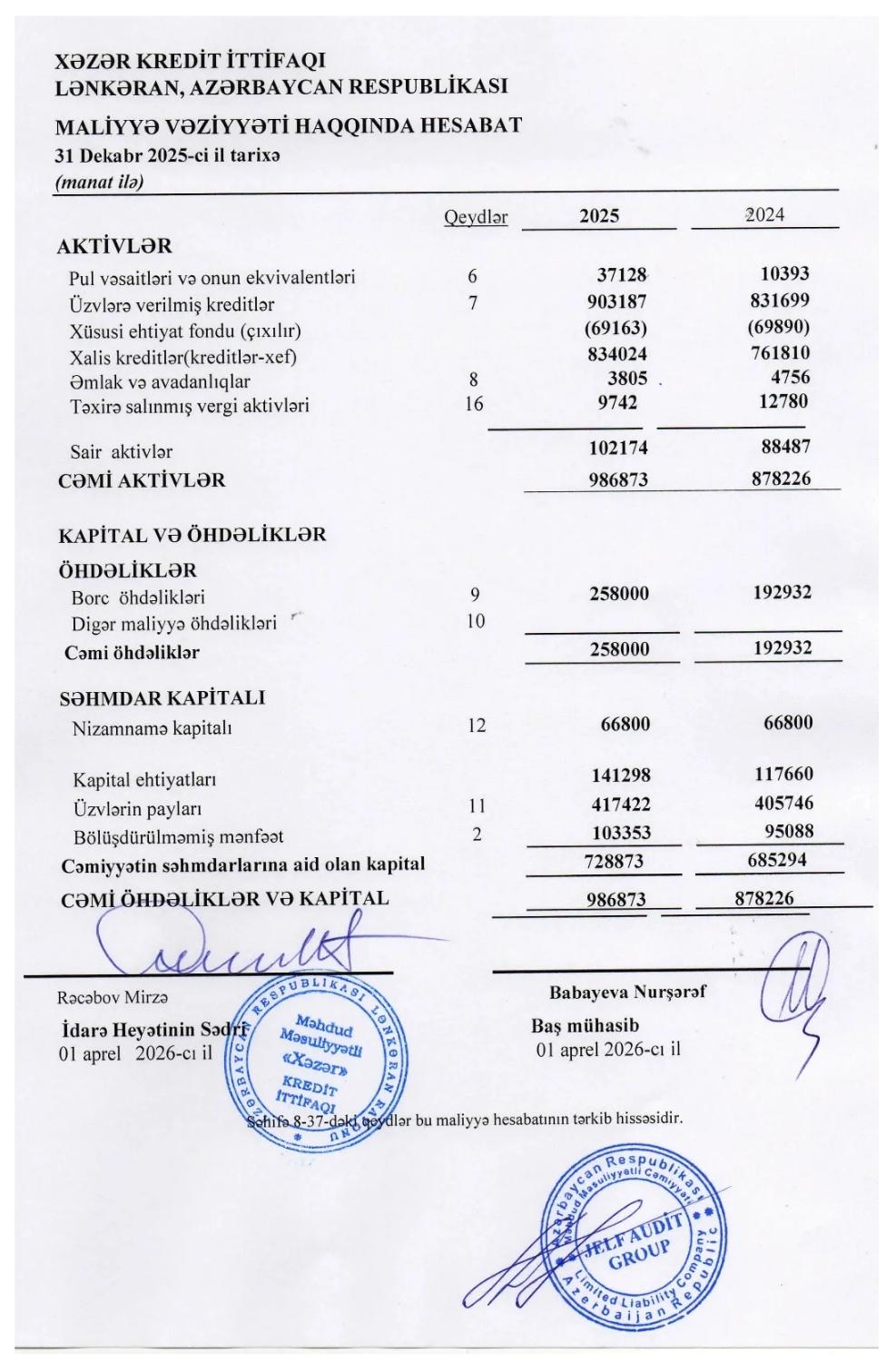 “Xəzər” Kredit İttifaqı Məhdud Məsuliyyətli Cəmiyyəti 2025-ci il üzər maliyyə nəticələrini açıqlayıb.