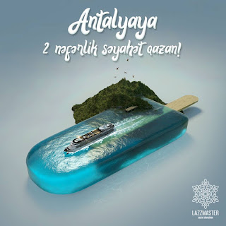 5. "Lazzmaster" şirkətinin paylaşımlarını çoxdandır izləyirəm və kommunikasiya strategiyasını bəyənirəm. Bu səhifə ilə tanışlığım isə bu poster sayəsində olmuşdur. Antalyaya səyahəti və dondurmanı ancaq bu qədər gözəl assosasiya edib vermək olardı.