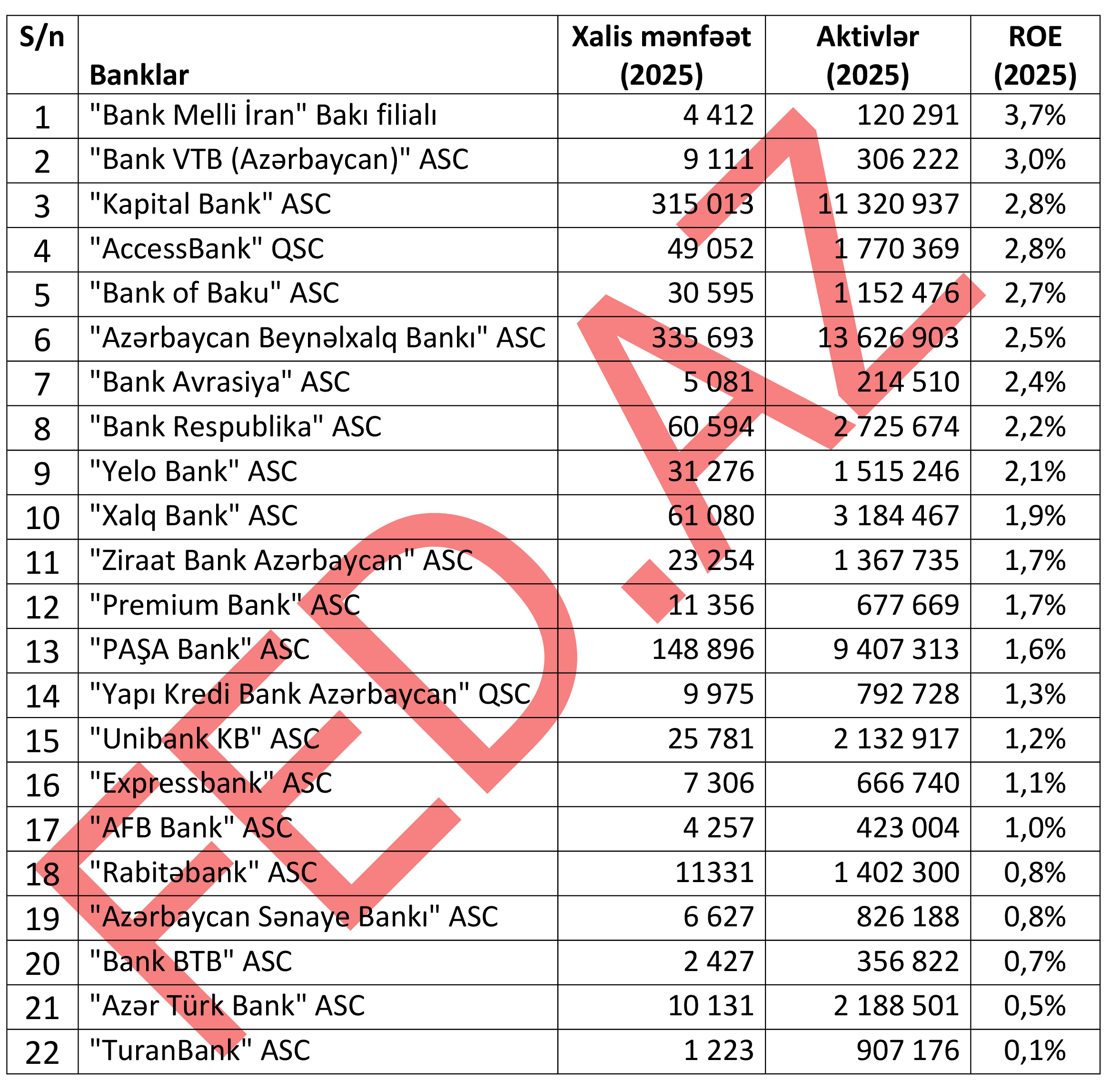 Azərbaycan bankları 2025-ci ili belə başa vurdular – MƏNFƏƏT-ZƏRƏR, TAM SİYAHI (2025) - YENİLƏNİB