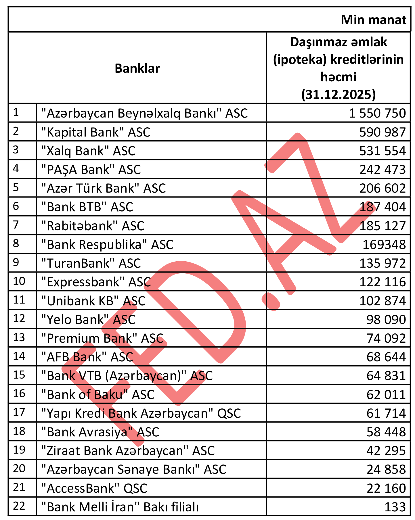 Renkinq 2025-ci ilin 4-cü rübünün sonuna olan vəziyyəti əks etdirir.