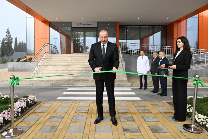 Azərbaycan Prezidenti İlham Əliyev Abşeron rayonunun Hökməli qəsəbəsində “Scandens Pharmaceutical Industries Ltd” MMC-nin dərman preparatları istehsalı müəssisəsinin açılışında iştirak edib.