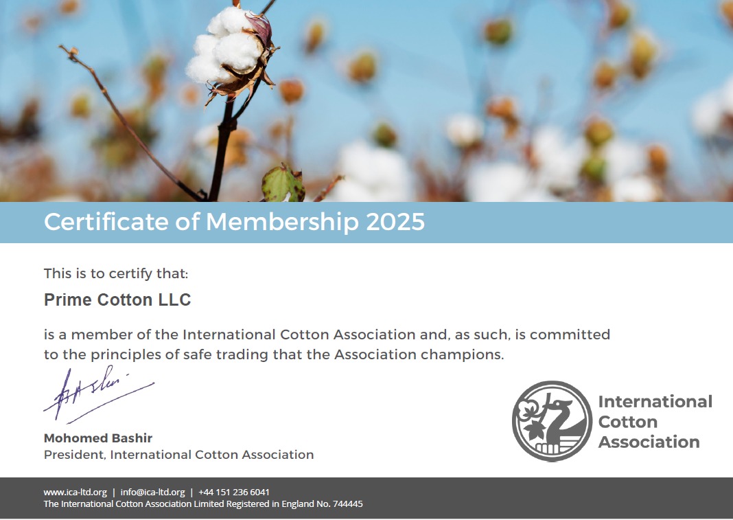 prinsiplərinə əməl etdiyini rəsmi şəkildə təsdiqləyib. Eyni zamanda, Beynəlxalq Pambıq Assosiasiyası (ICA) üzvlüyü şirkətə beynəlxalq pambıq ticarətində etibarlılıq və şəffaflıq prinsiplərinə sadiqliyini nümayiş etdirmək imkanı verib.