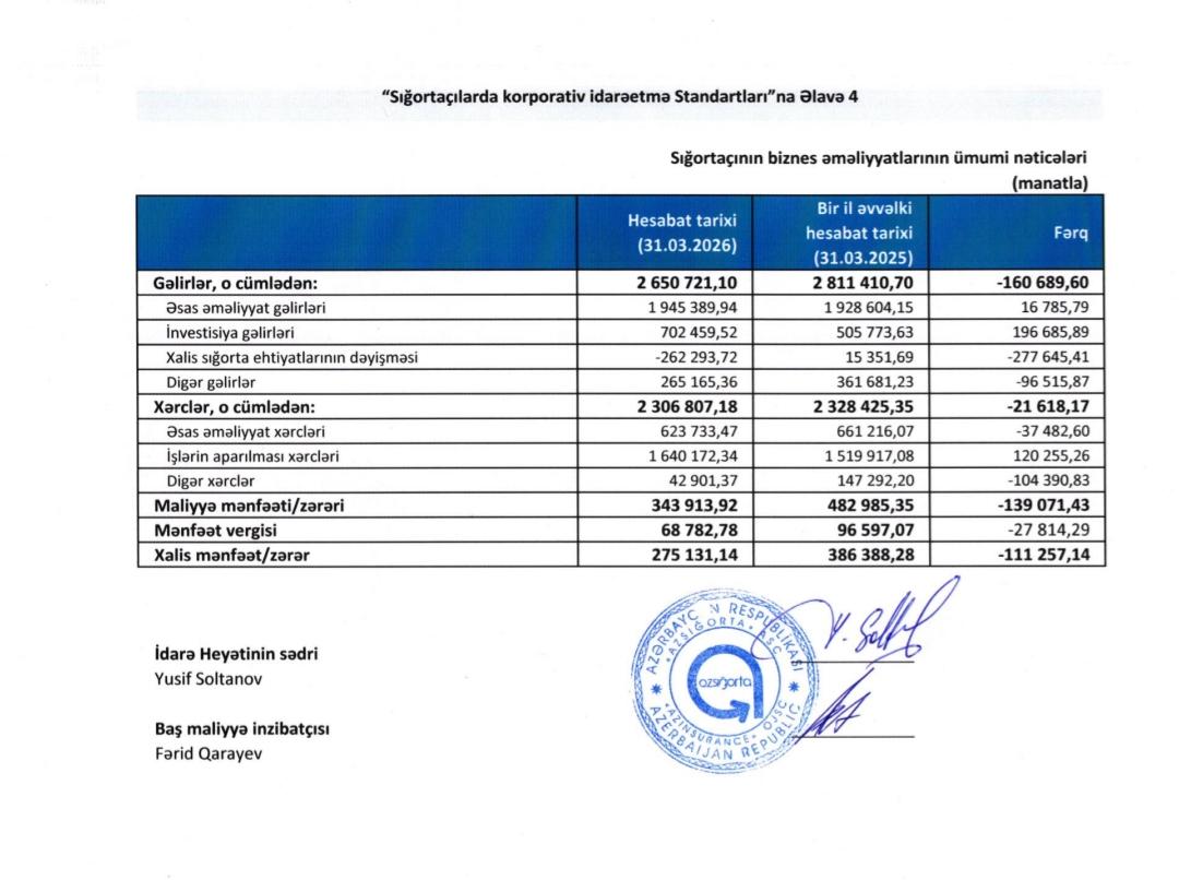 FED.az biznes və maliyyə xəbərləri portalı şirkətin hesabatına istinadən xəbər verir ki, bu dövrdə şirkətin gəlirləri 2 milyon 651 min manat təşkil edib. Bu, ötən ilin eyni dövrü ilə müqayisədə 160 min 690 manat və ya (5,7%) azdır. Gəlirlərin azalması xalis sığorta ehtiyatlarının azalması ilə bağlıdır. Belə ki, şirkətin xalis sığorta ehtiyatları son bir ildə 277 min 645 manat (18 dəfə) azalaraq 262 min 294 manata düşüb.