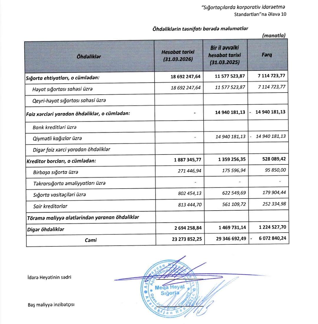 Eyni dövrdə şirkətin cəmi öhdəliklərinin həcmi 23 milyon 274 min manata çatıb ki, bu da, son üç ayda 3 milyon 658 min manat (18,1%) çoxdur.