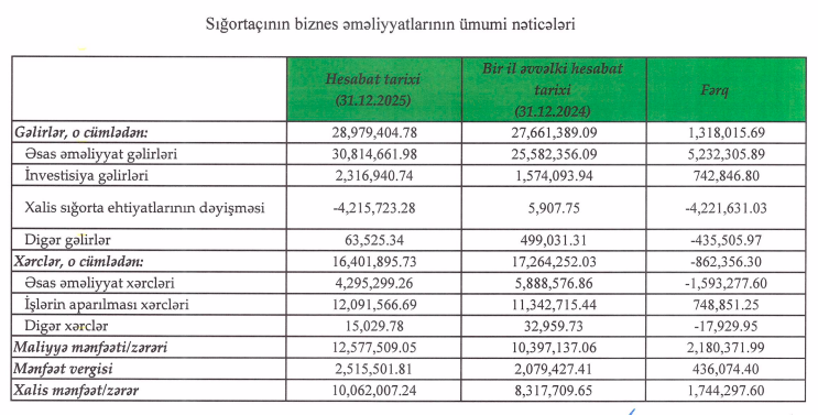 "Qala Həyat" Sığorta şirkətinin 2025-ci ilin yekunlarına dair mənfəət və zərər hesabatını açıqlayıb.