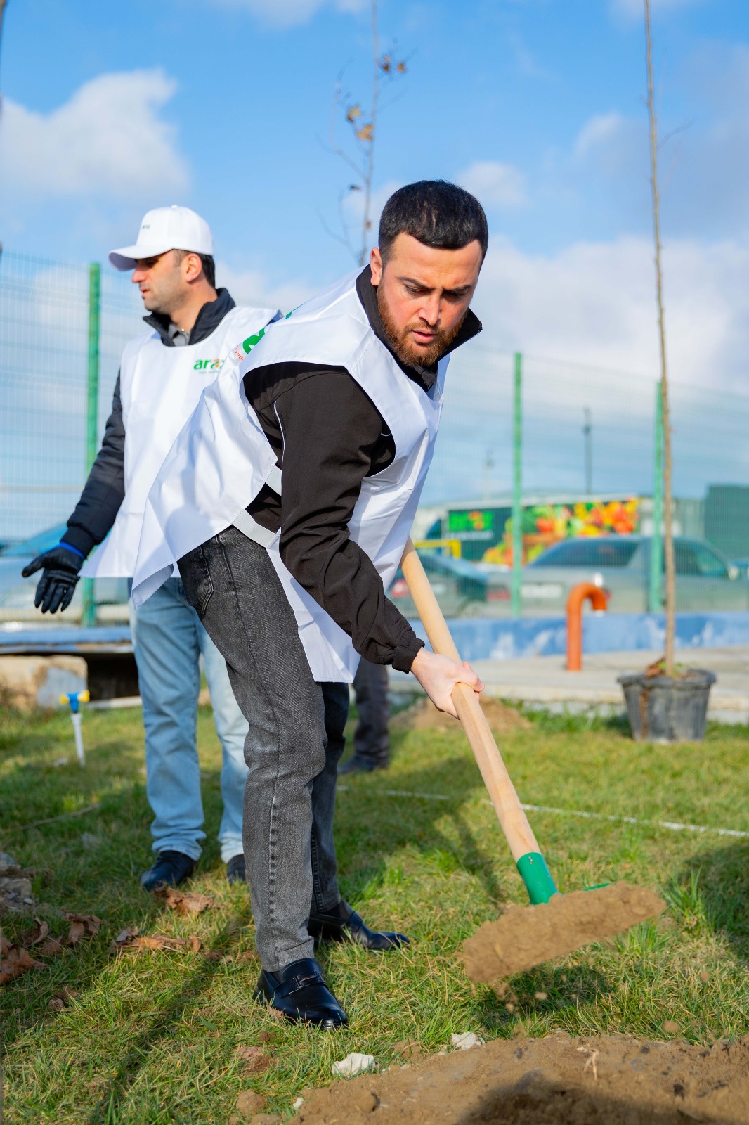 “Araz” supermarketlər şəbəkəsinə məxsus “Araz” Logistika Mərkəzinin həyətyanı sahəsində ekoloji tarazlığın qorunmasına və yaşıllığın artırılması məqsədilə ağacəkmə aksiyası keçirilib.