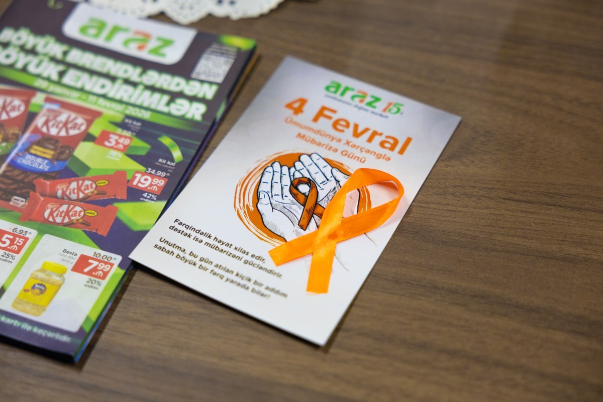 FED.az biznes və maliyyə xəbərləri portalı xəbər verir ki, 4-11 fevral tarixlərində keçirilən maarifləndirici həftə çərçivəsində “Araz” supermarketlər şəbəkəsinin əməkdaşlarına narıncı yaxa nişanları təqdim olunub. Əməkdaşlar bu nişanları taxaraq xərçənglə mübarizə mövzusunda diqqət çəkib, həmrəylik nümayiş etdiriblər.