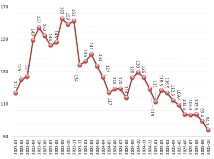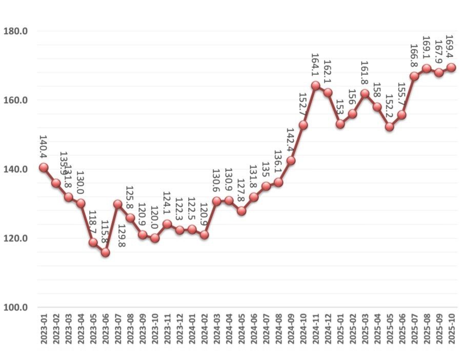 Birləşmiş Millətlər Təşkilatının Ərzaq və Kənd Təsərrüfatı Təşkilatı (FAO) Ərzaq Qiymətləri İndeksi (FFPI) 2025-ci ilin oktyabr ayında orta hesabla 126.4-ə bərabər olub. Bununla da ərzaq qiymətləri indeksi sentyabr ayı ilə müqayisədə 1.6%, ötən ilin müvafiq dövrü ilə müqayisədə isə 0.4% azalıb.
