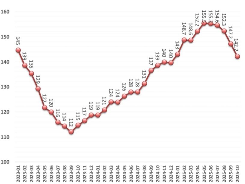 Süd məhsullarının Qiymətləri İndeksi oktyabr ayında orta hesabla 142.2 bənd təşkil edib: