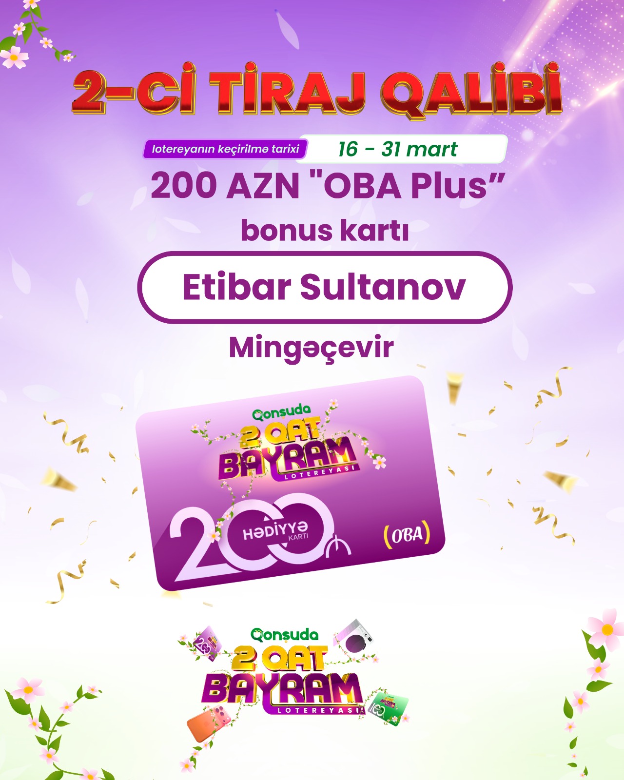 Etibar Sultanov (Mingəçevir) – 200 OBA Plus bonusu,