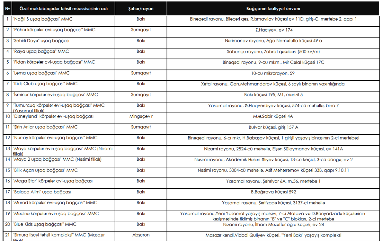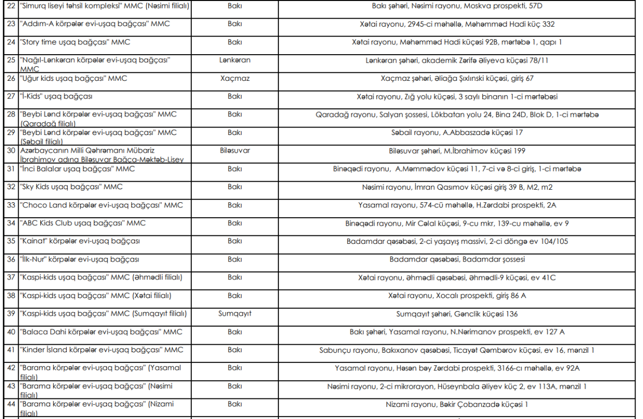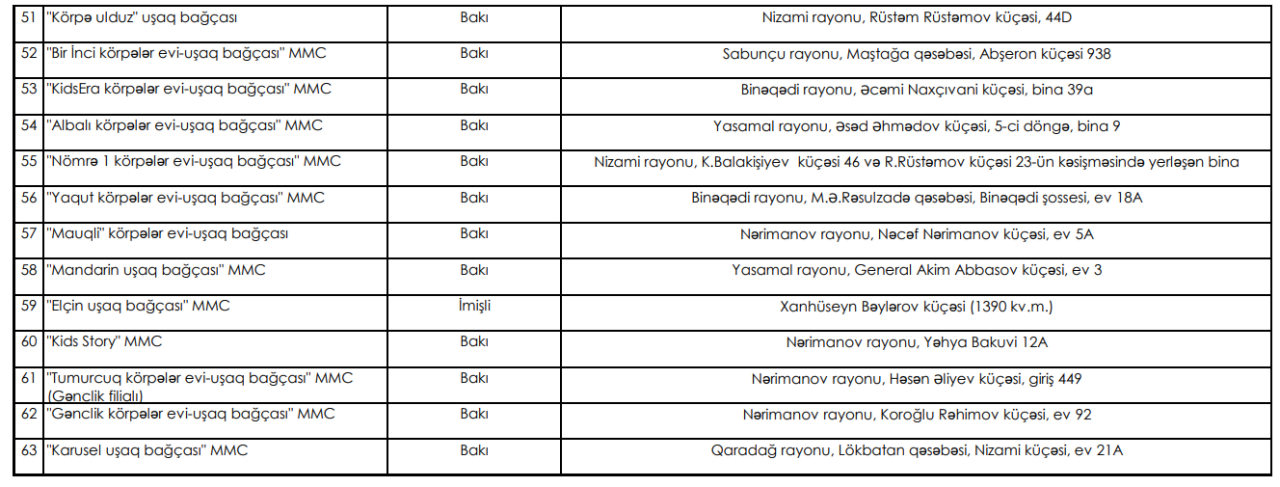 Qrant müsabiqəsində seçilmiş 63 bağçanın siyahısı belədir