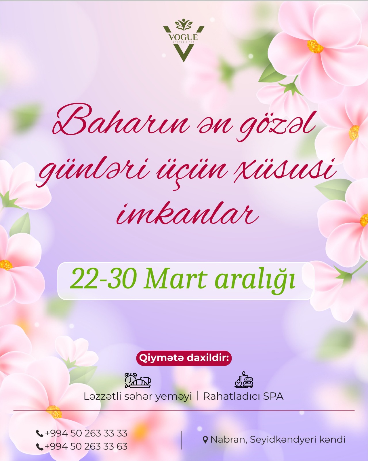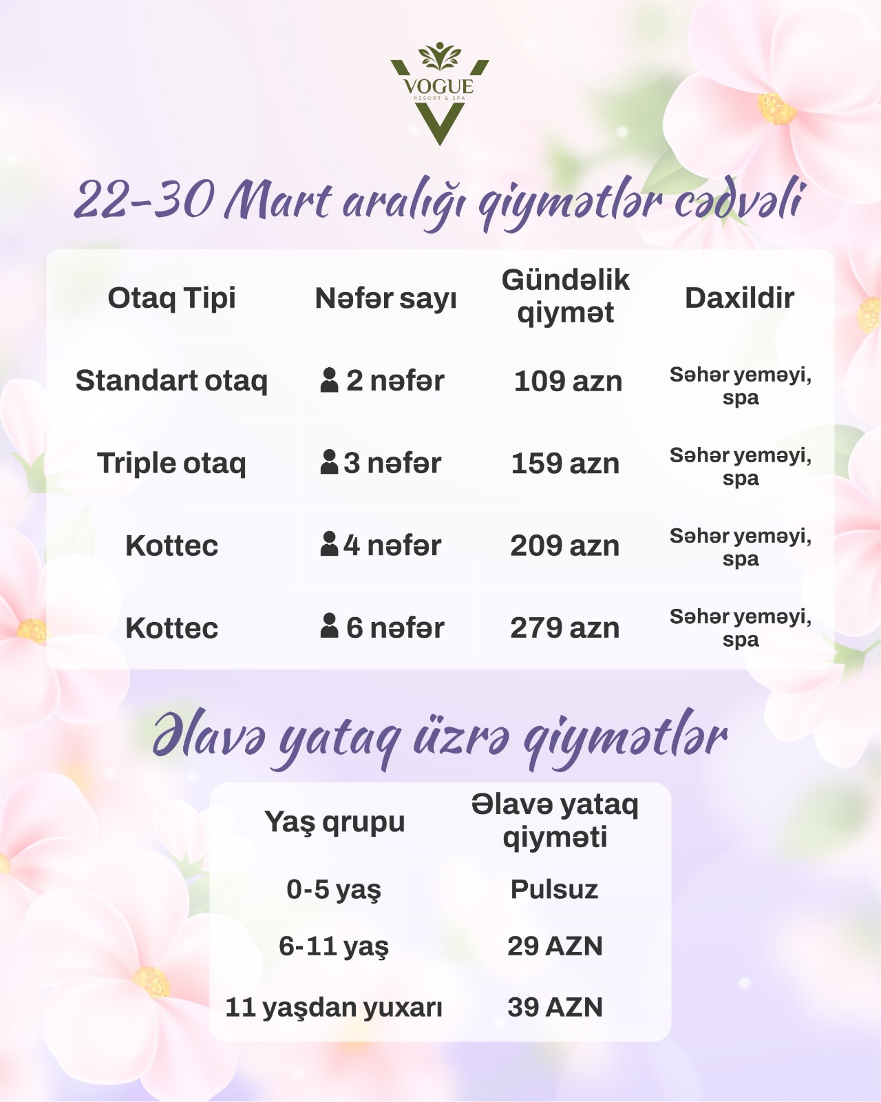 “Vogue Hotel Nabran”da sərfəli Novruz Bayramı paketlərinin qiyməti ilə tanış ola bilərsiniz: