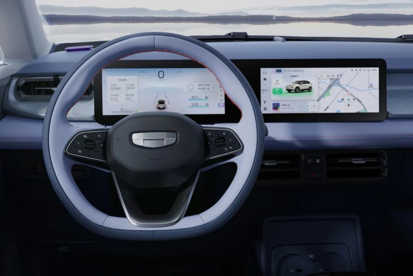 Что интересного внутри Geely Geometry E? Например, руль с антибактериальным покрытием, климат-контроль c cалонным фильтром стандарта CN95 (он задерживает 95% частиц размером меньше 0,3 микрон), два экрана с диагональю 10,25 дюйма и системы помощи при вождении в рамках уровня L2.