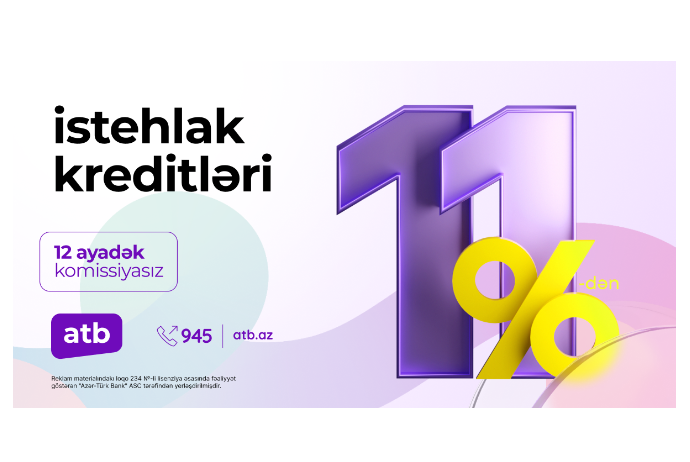 Государственный Azer Turk Bank продлил срок действия акции по потребительским кредитам, предлагаемым физическим лицам на срок до 12 месяцев с годовой процентной ставкой 11% и комиссией 0%.