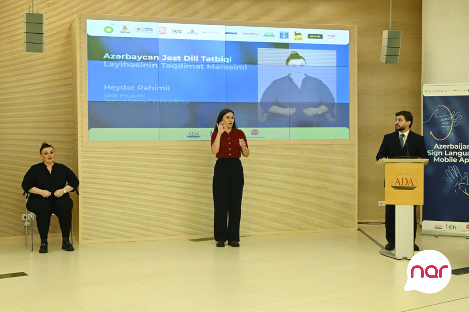 Директор департамента по связям с общественностью и корпоративным коммуникациям «Nar» Хёкума Керимова отметила: «Расширение доступа людей с нарушениями слуха и речи к информации и образованию одно из ключевых направлений КСО-стратегии «Nar». Поддерживая разработку этого мобильного приложения, мы способствуем построению инклюзивного общества и популяризации жестового языка в стране».
